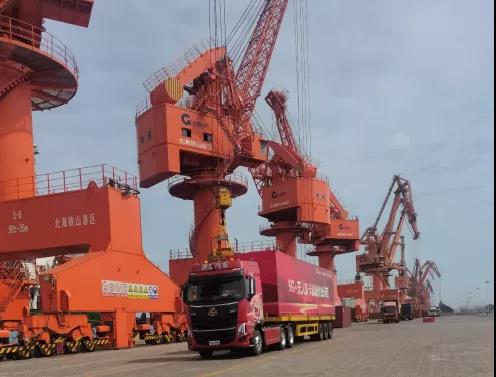 6月28日,广西首个5G+无人驾驶集装箱卡车作业港口落地北海码头。