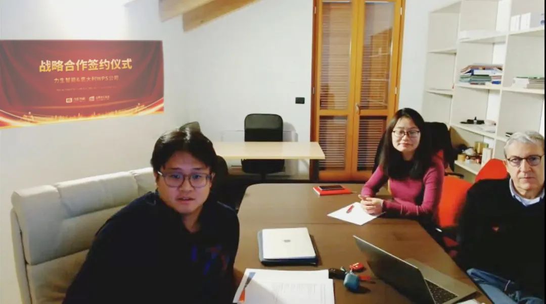 本次签约仪式采用了云端视频连线方式,跨越了欧亚两大洲。ISI法国欧亚集团董事长李贵生、总经理徐洪涛,ISI法国欧亚集团WPS公司董事长李筱、总经理Claudio Bovero、工程师马秀珍,力生智能董事长张高强、董事副总经理邢庆阳、分拣事业部总经理黄剑满、武汉兰皓科技总经理吴烽滨等人出席了签约仪式。