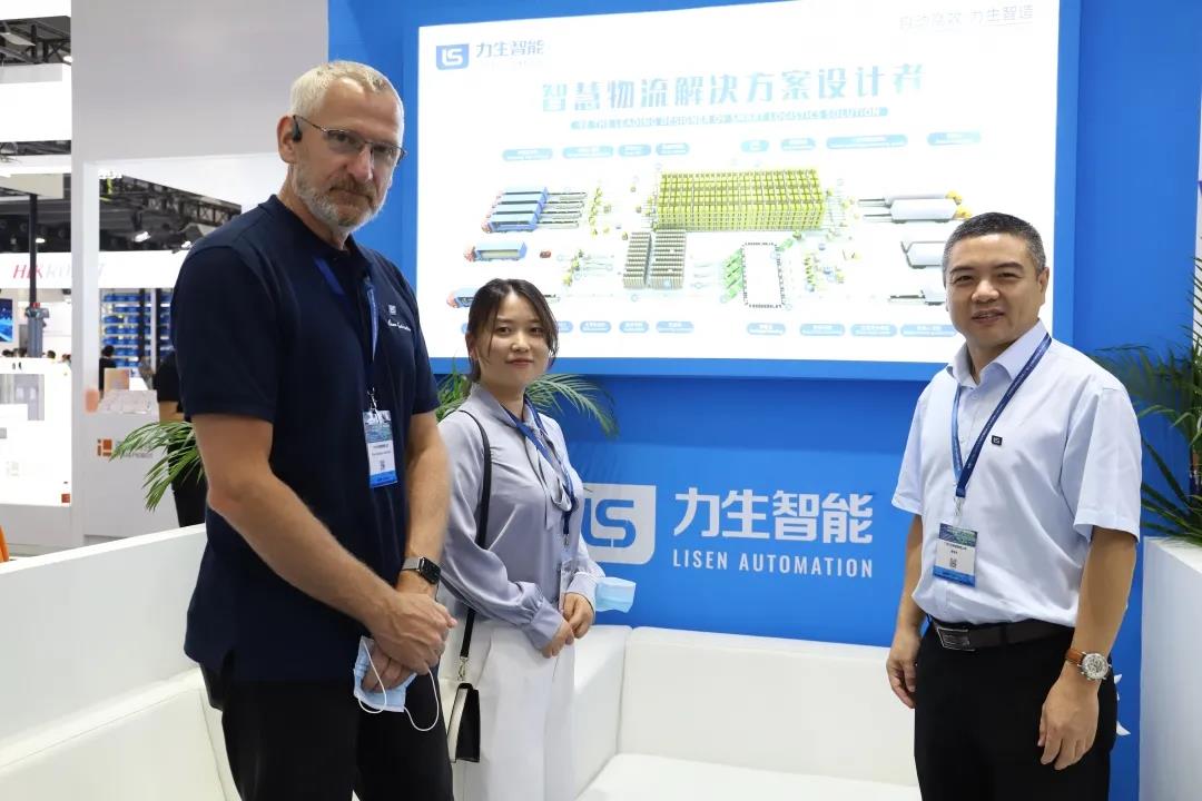 托盘混码机器人在现场大放异彩,吸引了多个大品牌客户的注意,纷纷向在场的力生技术工程师们进行咨询,甚至组团到展位上来详细交流。